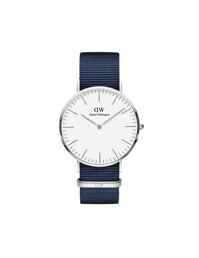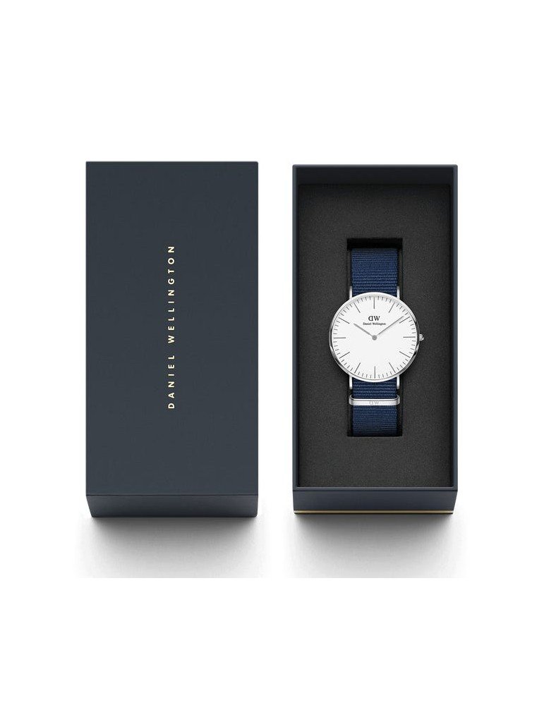 modello Classic Bayswater, con cassa da 40 mm argento, cinturino in resistente tessuto blu e quadrante bianco