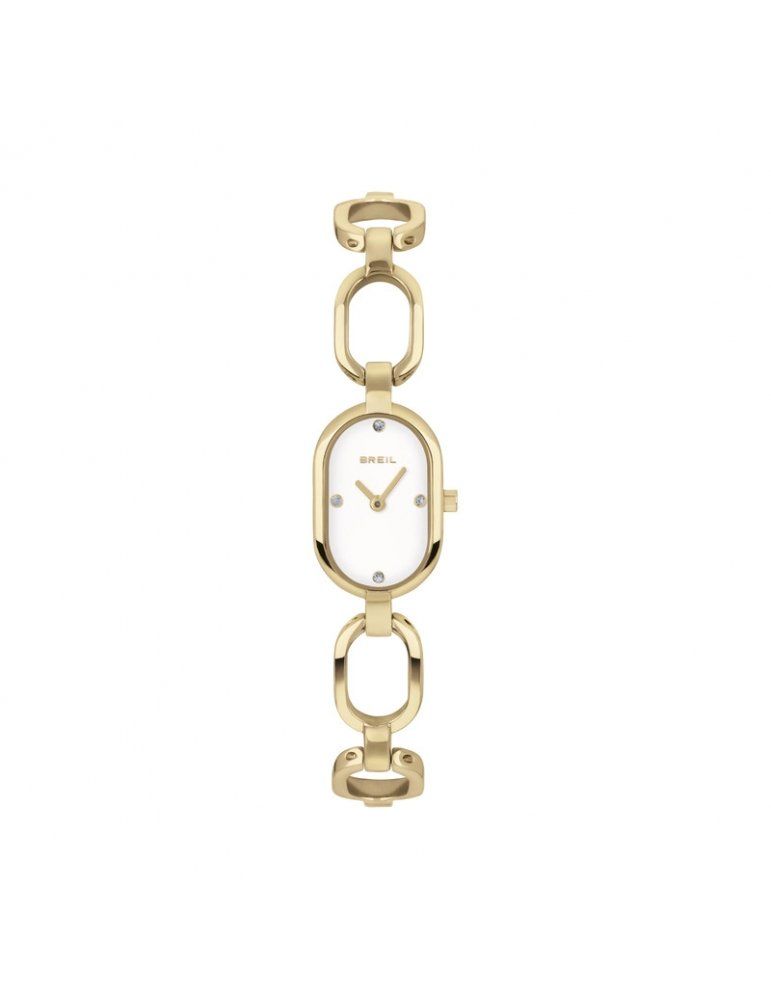 Realizzato interamente in acciaio, ha una cassa ovale che riprende il design delle maglie del bracciale, sottili e leggere.