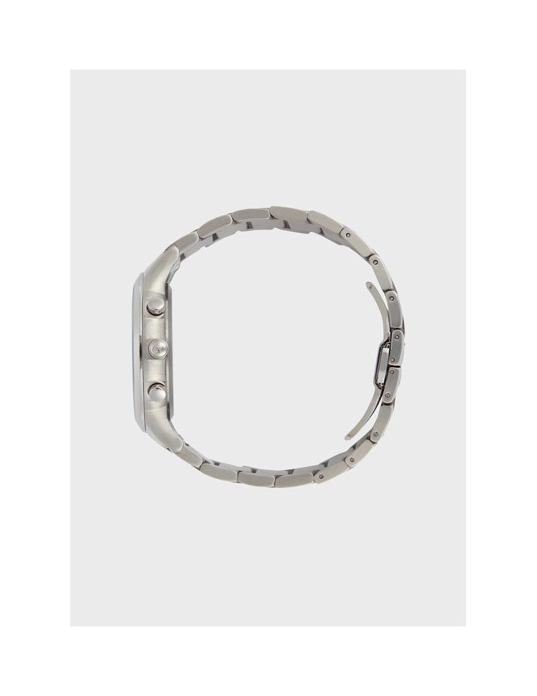 Con questo cronografo Emporio Armani crea un modello in cui stile e funzionalità convivono alla perfezione. La cassa in acciaio offre uno spazio ampio e sicuro che ospita il quadrante e la finestra del datario. Il bracciale in acciaio lucido e brillante aggiunge un tocco distintivo al modello.