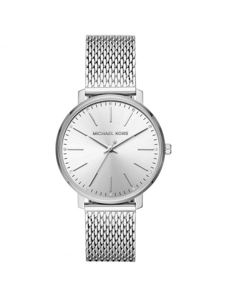 L'orologio Pyper è l'emblema dell'eleganza quotidiana. Riproposto con un cinturino a maglie in acciaio inossidabile, questo modello tonalità argento presenta un quadrante minimal e delicati pavé.