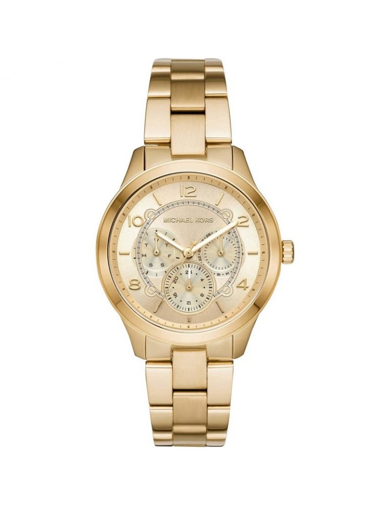 L'orologio Runway aggiunge una nota di preziosità agli outfit di tutti i giorni. Realizzato in acciaio inossidabile tonalità oro, questo orologio dal design classico presenta tre quadranti secondari e un meccanismo multifunzione.