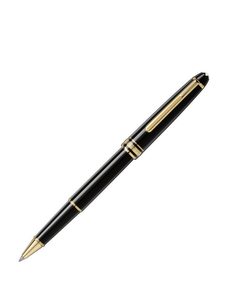 La Meisterstück Classique in pregiata resina nera con dettagli finitura oro, sormontata dall'emblema a forma di stella bianca, rappresenta un'esclusiva icona di design.