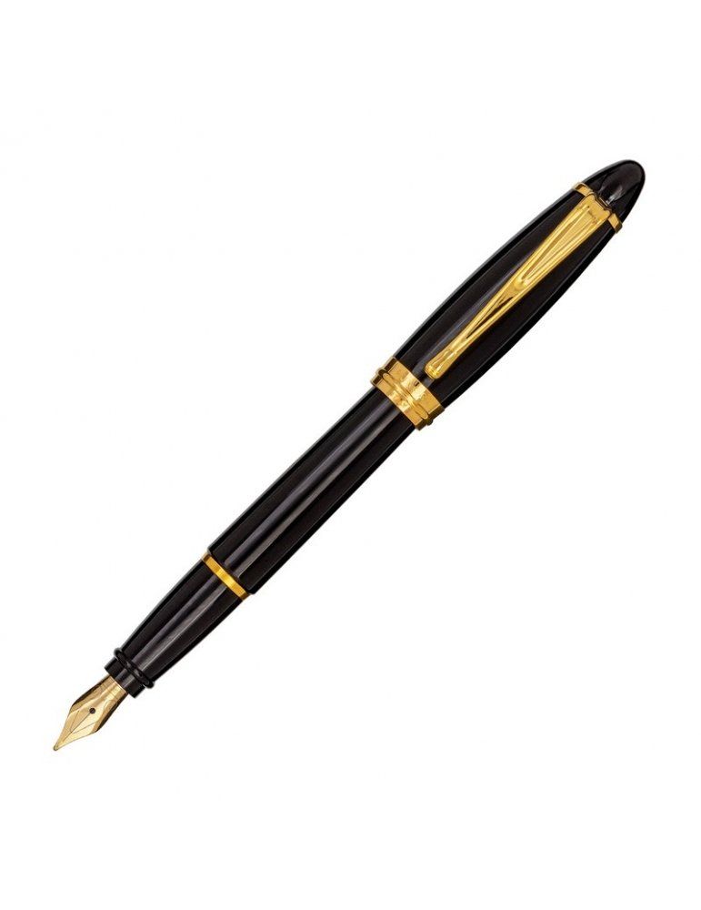 della linea Ipsilon Resin, con cappuccio e corpo in pregiata resina, finiture dorate e pennino in acciaio dorato