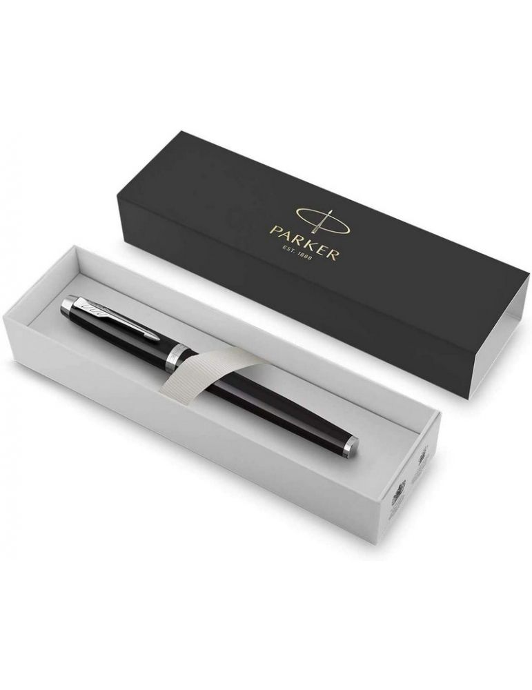 della serie IM, in resina laccata nera, finiture acciaio cromato, clip sagomata con il classico stile Parker