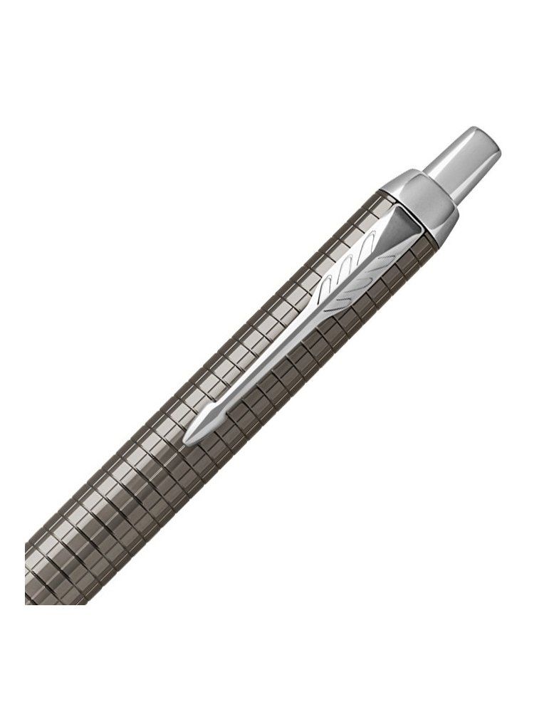 della serie IM Premium, in resina lucida sagomata, finiture cromate, clip sagomata con stile Parker