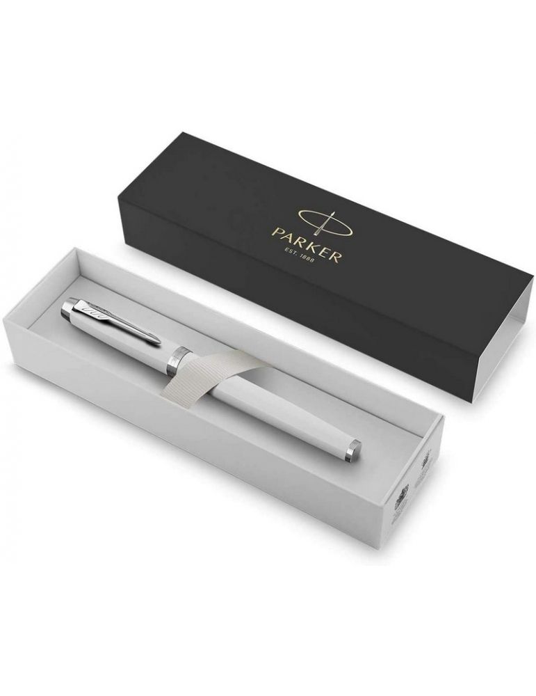 della serie IM, in resina laccata bianca, finiture acciaio cromato, clip sagomata con il classico stile Parker