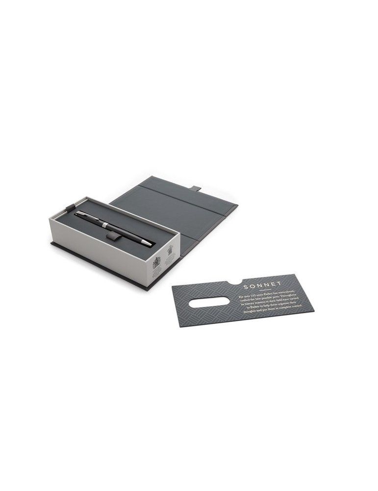 della serie Sonnet, in resina satinata nera, finiture in acciaio cromato, clip sagomata stile Parker