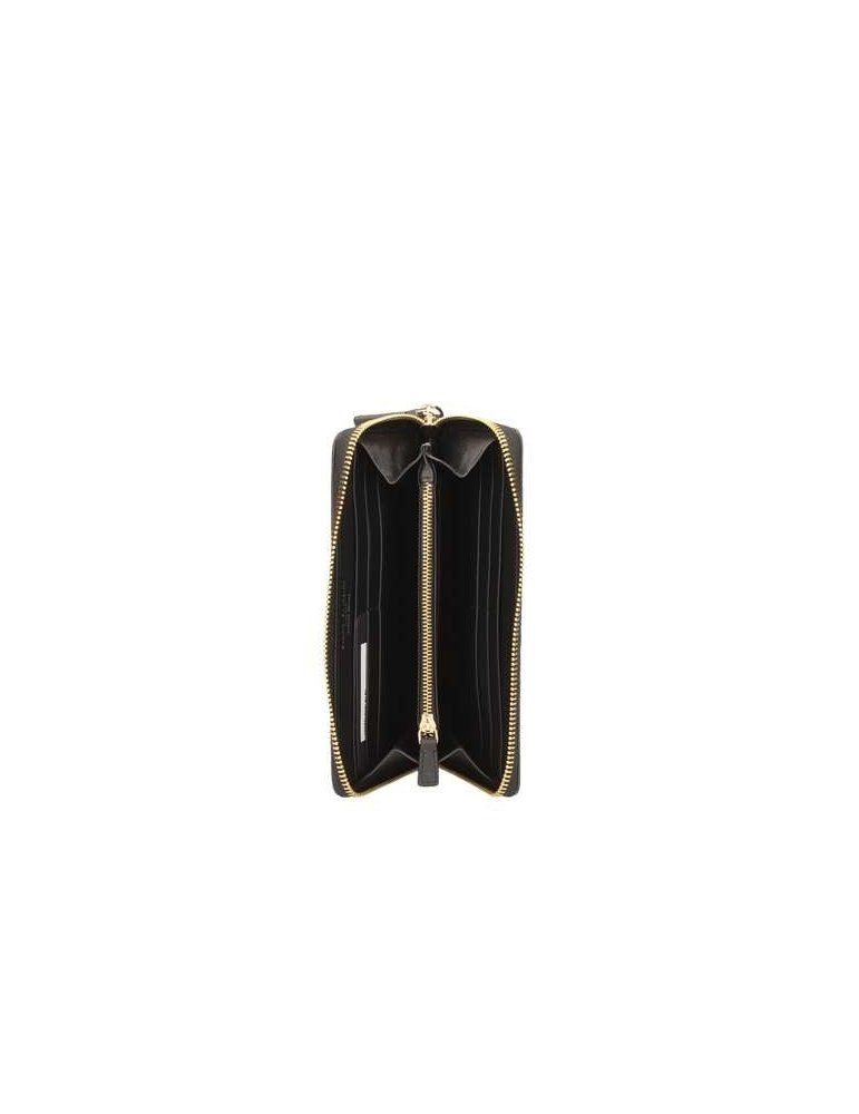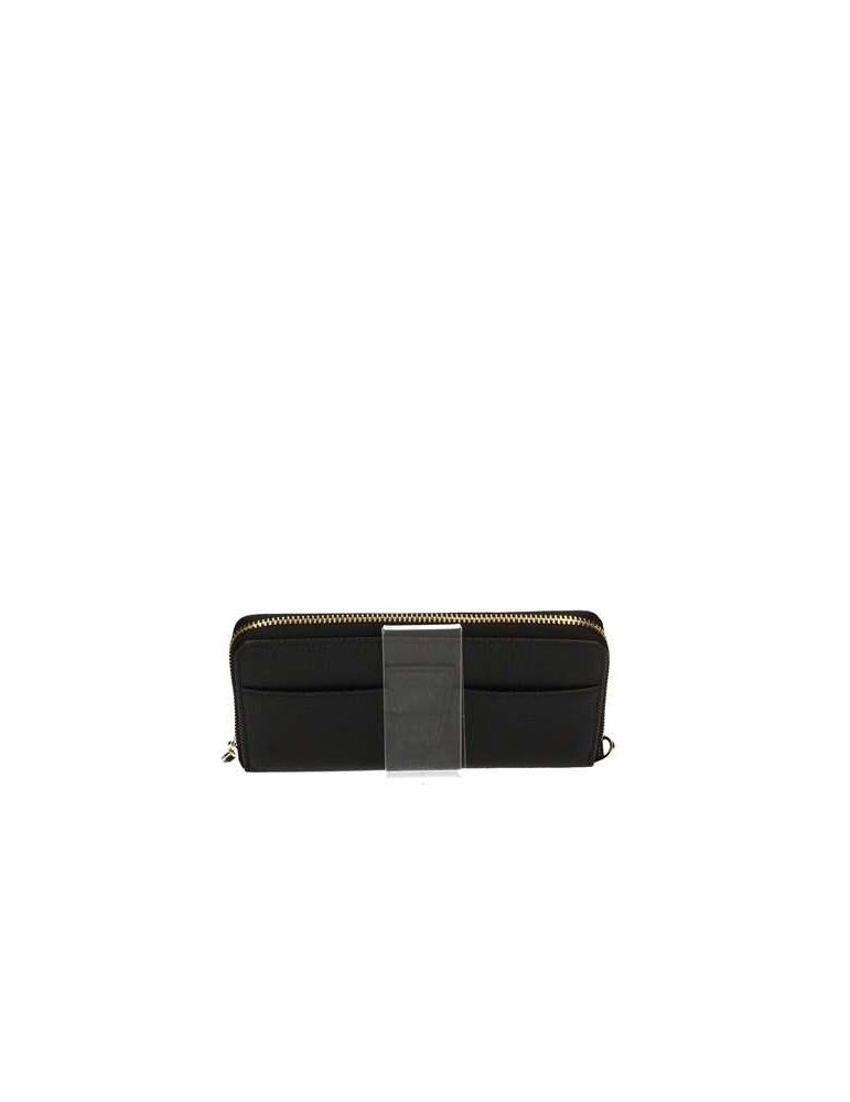 Elegante portafoglio da donna in pelle nera, con fodera in tessuto e scomparti interni multifunzione