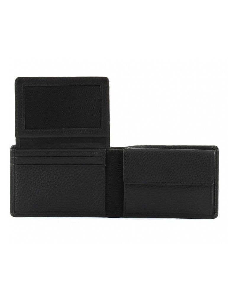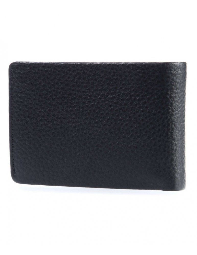 della linea Cervo 2.1, in morbida pelle nera martellata, con 4 scomparti per carte di credito e portamonete