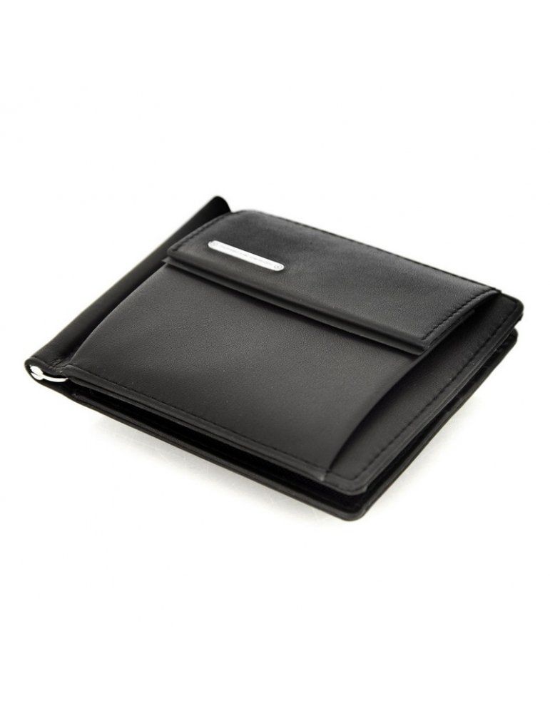 della linea CL2, in elegante pelle nera liscia, con fermasoldi e 10 scomparti per carte di credito