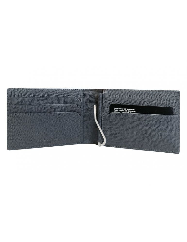 Portafoglio con fermasoldi in pelle di vitello pieno fiore proveniente dall'Italia, fodera jacquard con marchio Montblanc, emblema Montblanc con anello finitura palladio, colore interno grigio scuro, colore esterno grigio