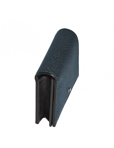Realizzato in pelle Sartorial goffrata in blu tweed, un colore unico che fonde con eleganza nera e blu, il portafoglio continental Sartorial nano è un oggetto essenziali intramontabile. Compatto e al contempo capiente, questo portafoglio orizzontale presenta un portamonete, una patta con bottone a pressione e l’emblema Montblanc finitura palladio. Presenta un’apertura per carte di credito, tre aperture supplementari per carte, uno scomparto per banconote, una tasca con cerniera e due tasche aggiuntive per una perfetta organizzazione.