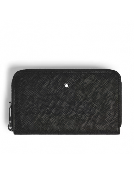 Portafoglio Montblanc Continental Medio 12 Tasche con Cerniera in Pelle Sartorial Nero