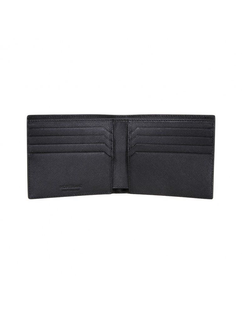 Portafoglio in pelle di vitello pieno fiore proveniente dall'Italia, fodera jacquard con marchio Montblanc, emblema Montblanc con anello finitura palladio.