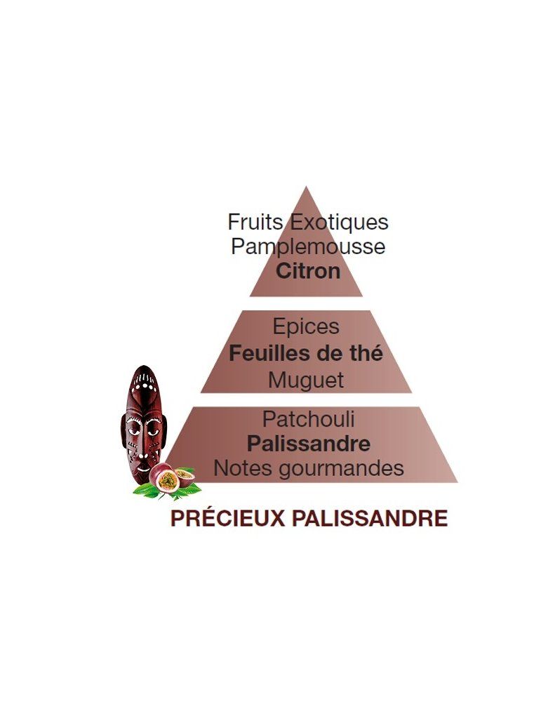 Il nuovo profumo de Maison Lampe Berger Précieux Palissandre evoca una dolce morbidezza, una finitura estremamente preziosa di questo legno massiccio che, cesellato nella parte più profonda della corteccia, travolge in un’esplosione olfattiva. All'inizio il carattere acidulato del pompelmo e dei frutti esotici è mitigato dal gusto del limone dolce. Nel cuore, il bouquet di fiori leggeri è esaltato dalle spezie e dalle foglie di tè. Il fondo ricco, invece, svela il calore del patchouli e la dolcezza della vaniglia. Un profumo sinceramente prezioso.