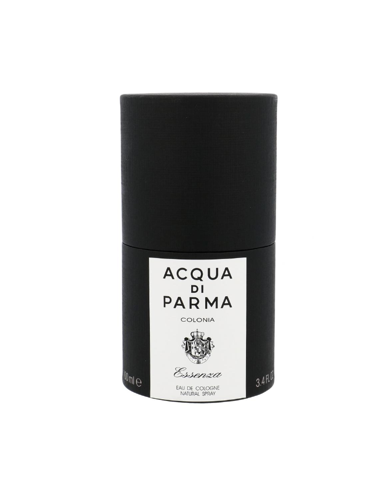 Colonia Essenza si presenta nell'inconfondibile flacone di Acqua di Parma, un’icona dell’Art Déco che, in nero con la classica etichetta bianca, richiama il carattere sofisticato dell’Eau de Cologne. In nero con l’etichetta bianca anche la confezione cilindrica.