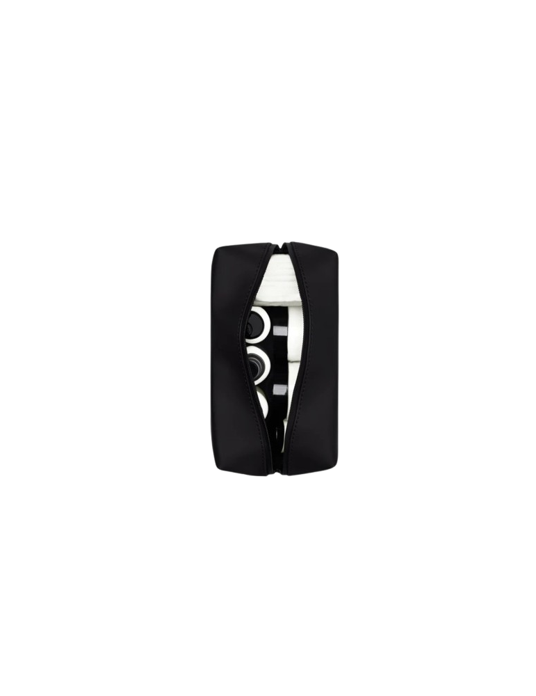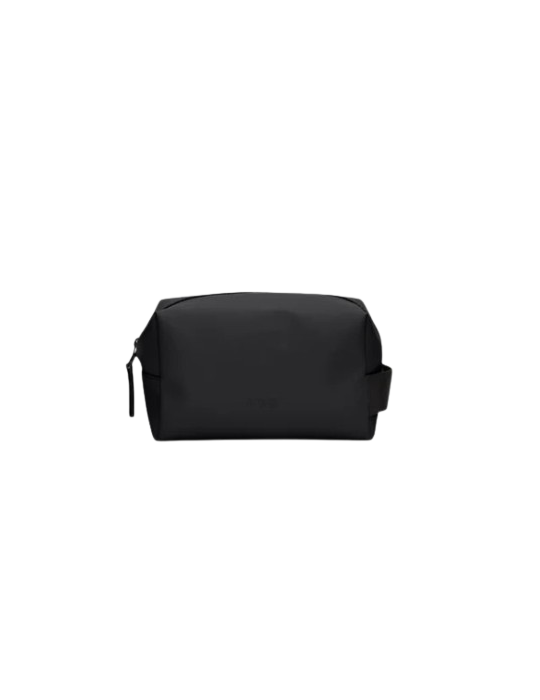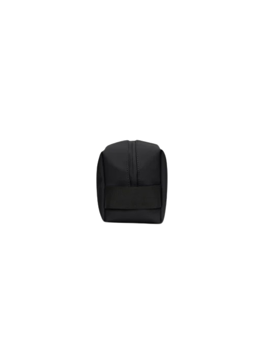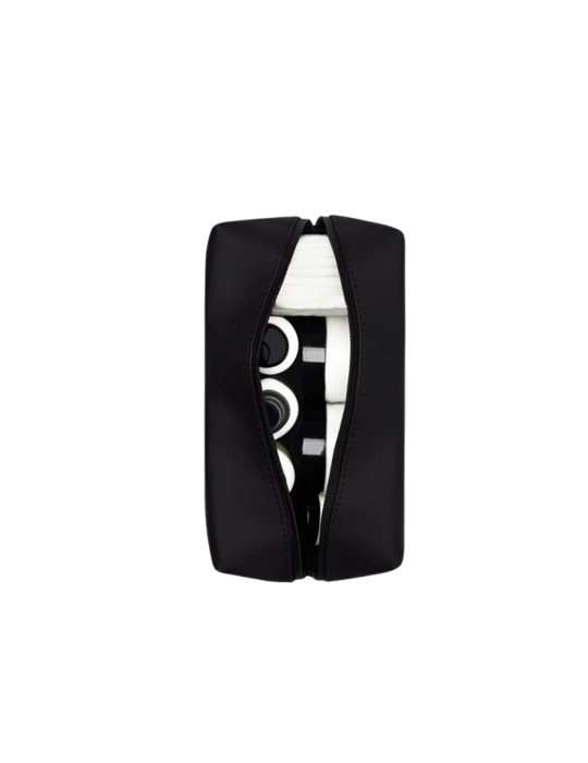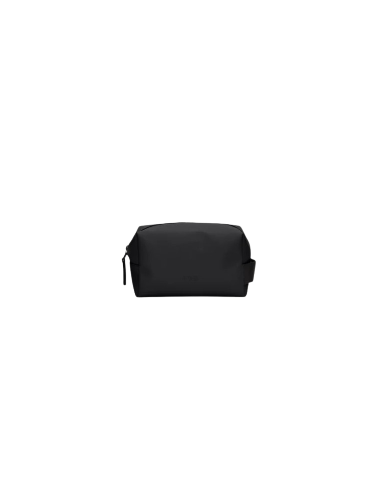 La Wash Bag Small è realizzata in tessuto PU impermeabile firmato Rains, progettato per essere robusto, duraturo e piacevole al tatto.