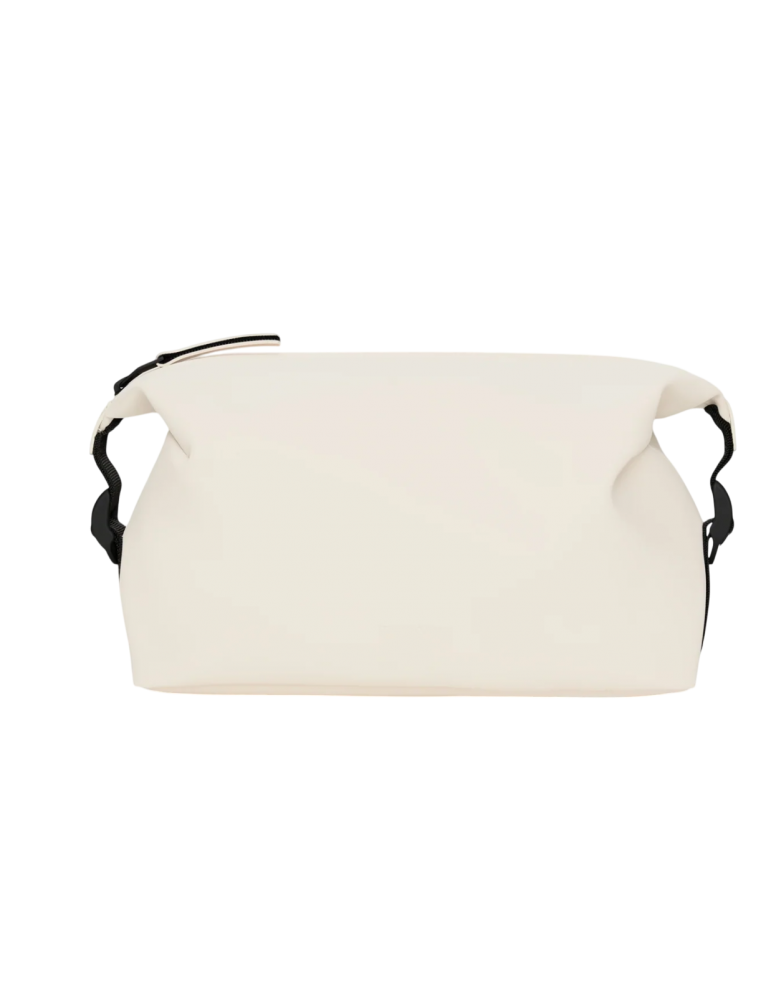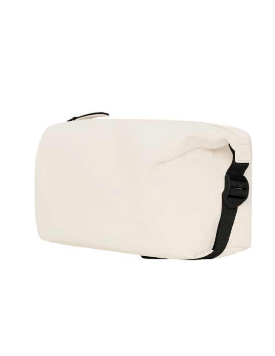 La Hilo Wash Bag è realizzata nell'iconico tessuto PU impermeabile di Rains, progettato per essere robusto, duraturo e piacevole al tatto