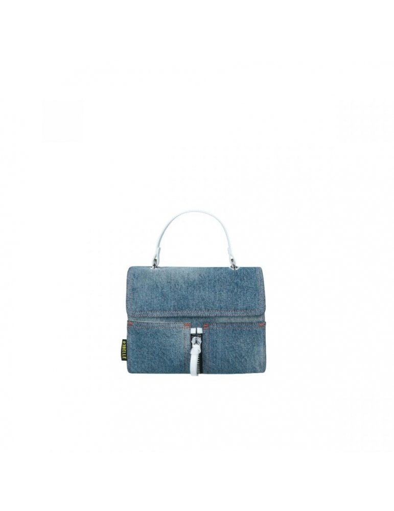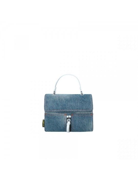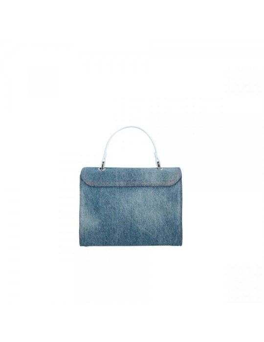 Lei è CHLOE DENIM, la nostra nuova mini bag che fa parte della collezione RE-DENIM. E' caratterizzata da una doppia portabilità, può essere portata a mano, e grazie alla tracolla staccabile e regolabile, può essere portata crossbody. L'interno è foderato e sono presenti due pratiche tasche, una piccola e una più ampia.