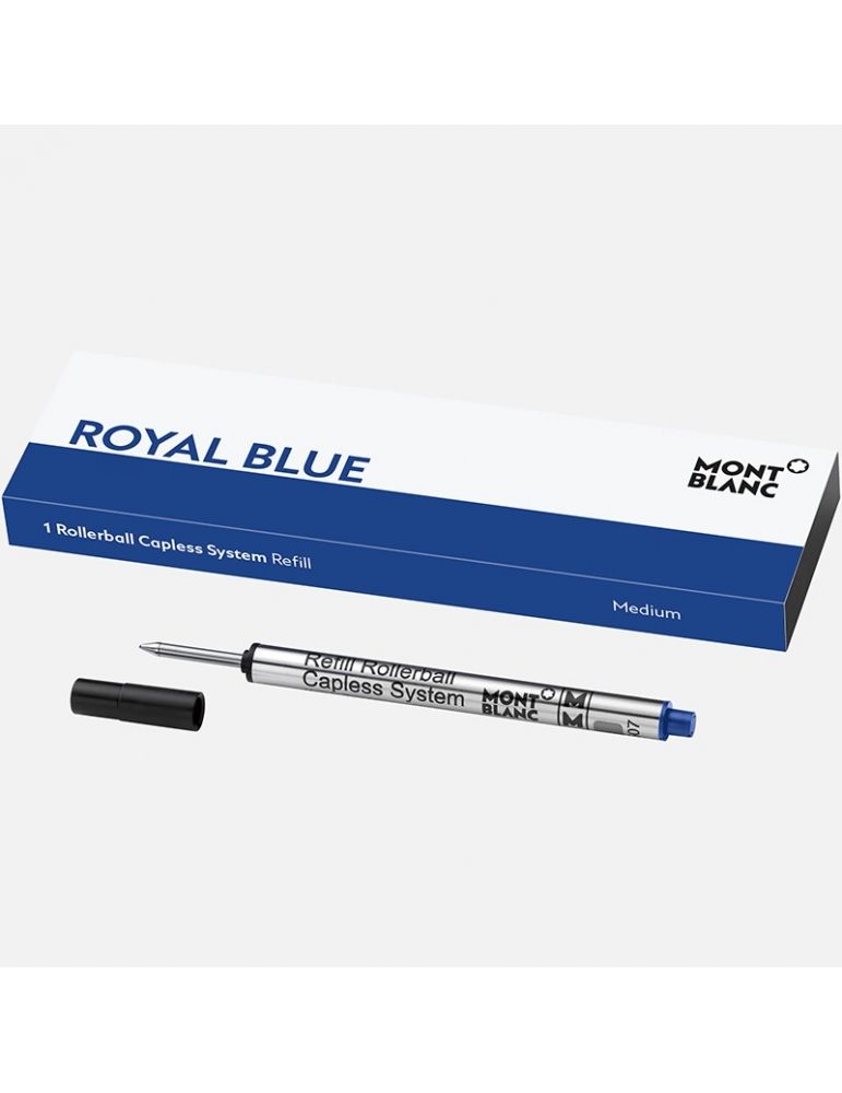 Refill per roller Montblanc senza cappuccio, Royal Blue (blu) (M). Adatto a Heritage Collection 1912 senza cappuccio e roller Montblanc M. Unità per confezione = 1 refill. M = tratto di spessore medio.