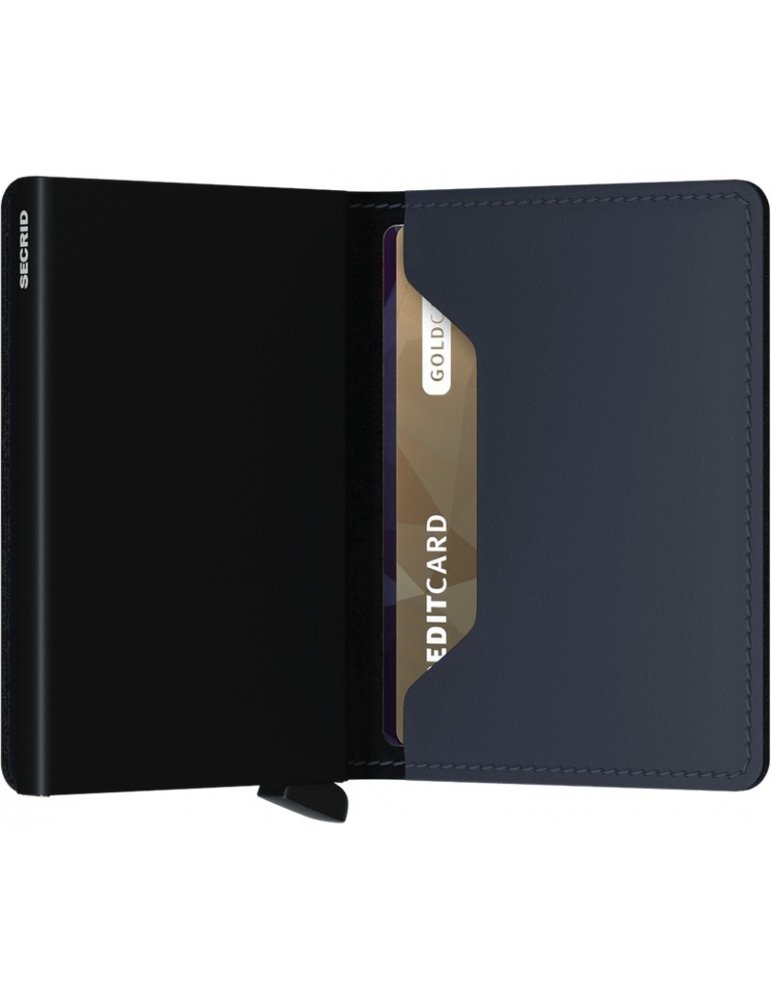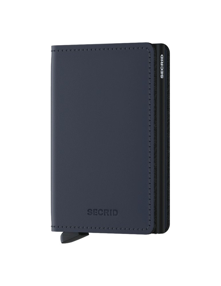 Portacarte Matte Night Blue dal meccanismo brevettato che consente di estrarre le carte con un unico, semplice movimento