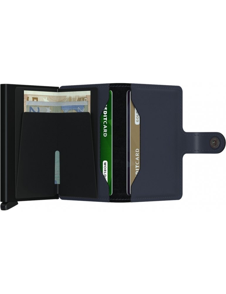 Portacarte Matte Nightblue dal meccanismo brevettato che consente di estrarre le carte con un unico, semplice movimento