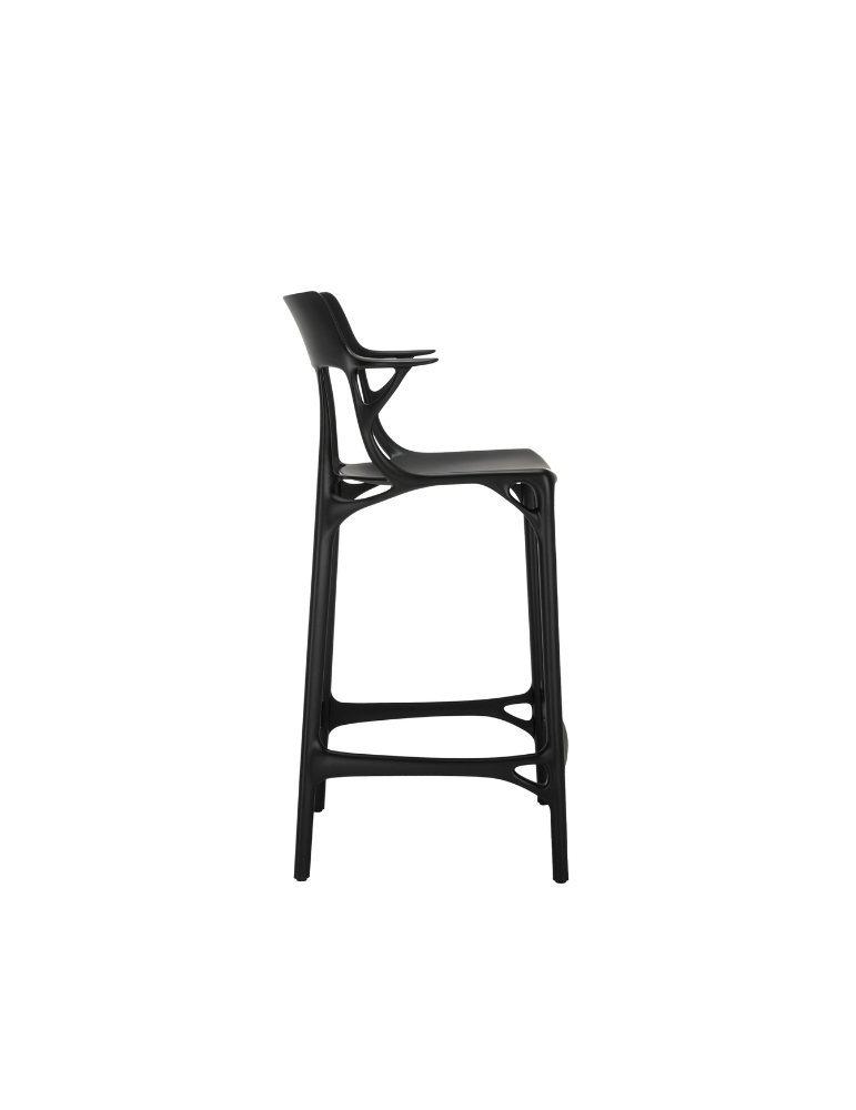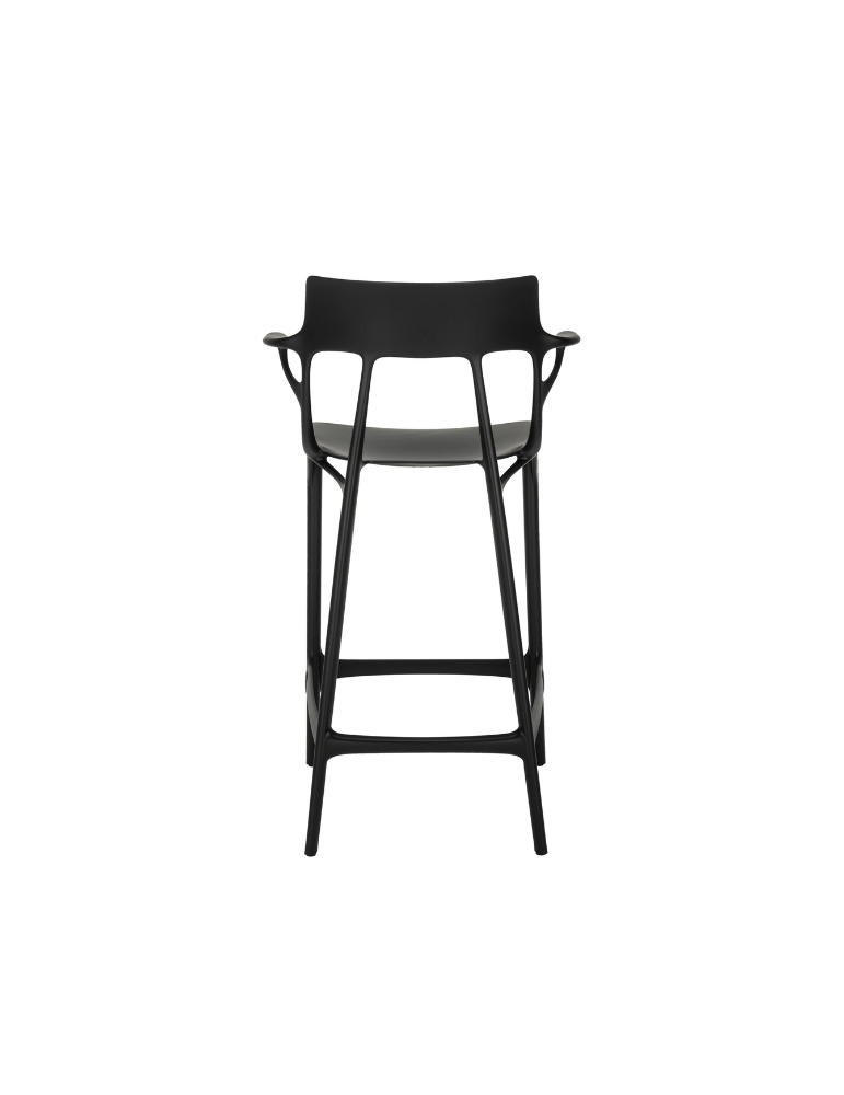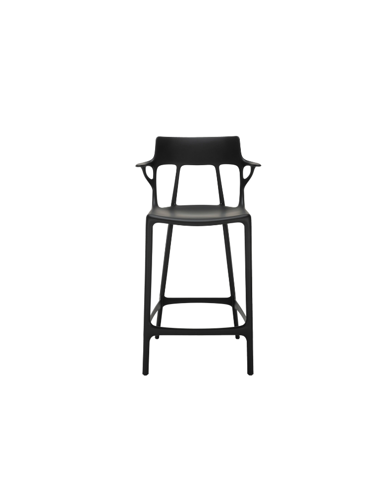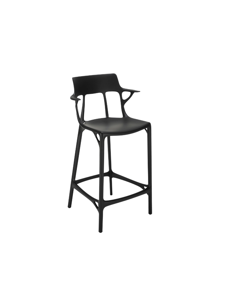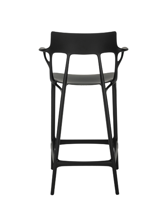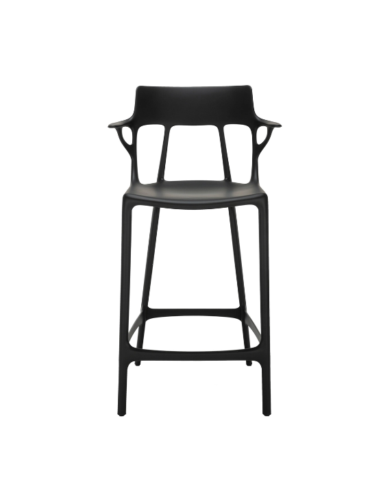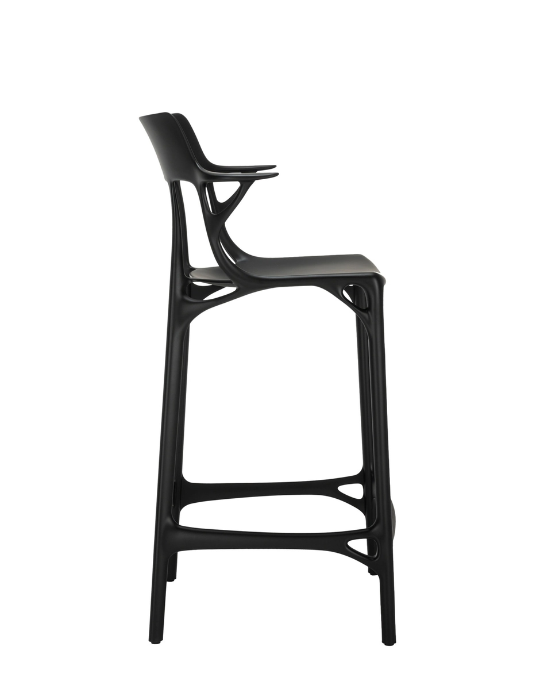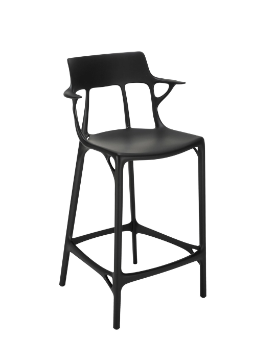 Si allarga la famiglia A.I. con A.I. Stool, uno sgabello in materiale riciclato che punta tutto sul comfort, con una seduta molto larga e accogliente. Disponibile in due altezze per soddisfare tutte le esigenze. Il valore aggiunto di A.I. consiste nell’essere la prima famiglia di prodotti concepita dall’Intelligenza Artificiale che ha risposto agli input ricevuti dal designer (Philippe Starck) e al know-how dall'azienda (Kartell). Nello specifico, pensiero creativo, know-how aziendale e intelligenza artificiale si sono fuse per concepire un modello di sedia totalmente elaborato da un algoritmo che rispetta le richieste originali del designer e dell’azienda ovvero essere un prodotto, confortevole, che abbia i requisiti strutturali di resistenza e solidità richiesti, mantenendo anche uno dei valori principali di Kartell: essere un prodotto industriale stampato ad iniezione di grande qualità estetica.