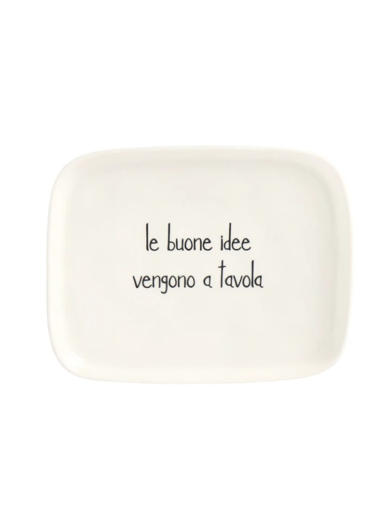 Piatto rettangolare in gres decoro Le buone idee vengono a tavola 20x15.5 cm