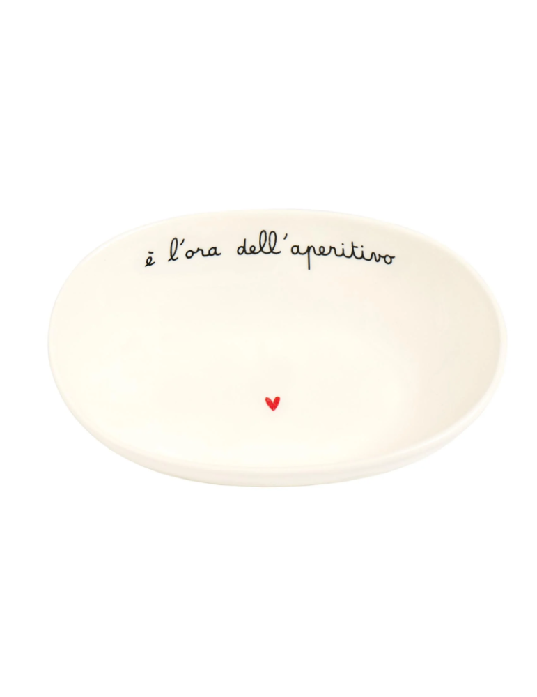 Coppetta ovale in gres decoro E' l'ora dell'aperitivo, 20 x 13.5 x h 6 cm