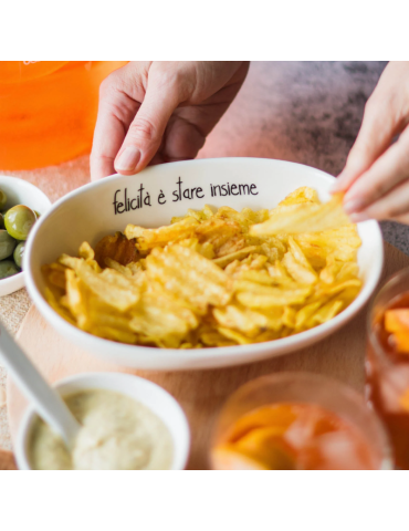 Coppetta ovale in gres decoro Felicità è stare insieme, 20 x 13.5 x h 6 cm