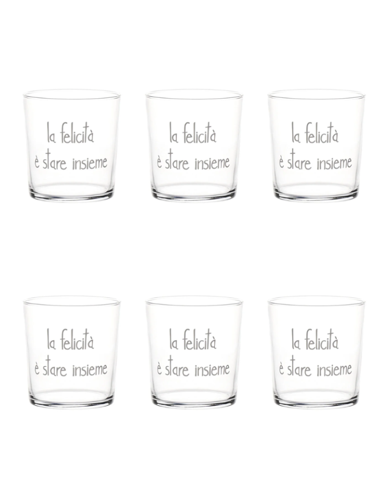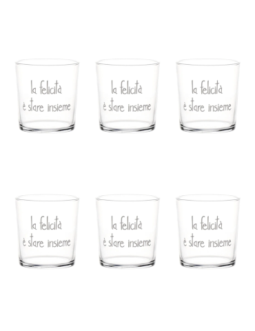 Set 6 Bicchieri acqua decoro La felicità è stare insieme