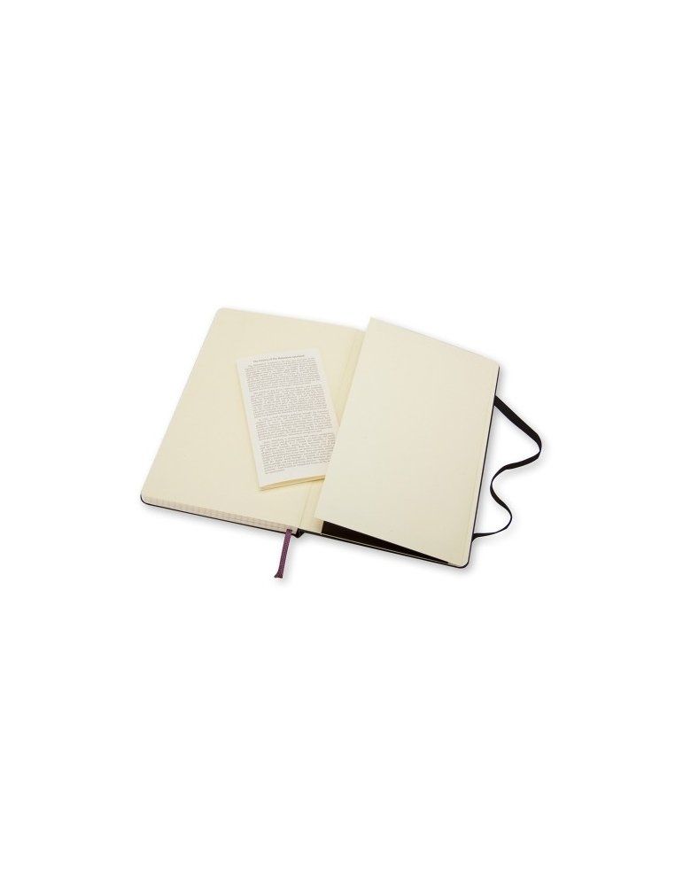 - Dispone di una tasca interna a soffietto, contenente un testo che racconta la storia di Moleskine