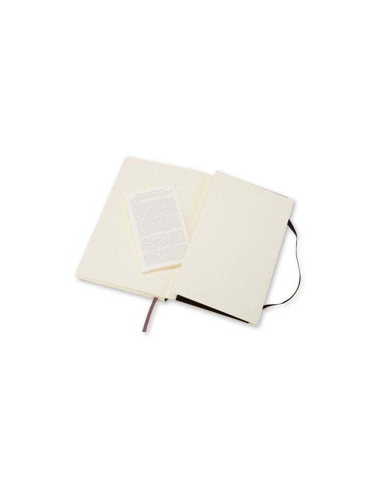 - Dispone di una tasca interna a soffietto, contenente un testo che racconta la storia di Moleskine