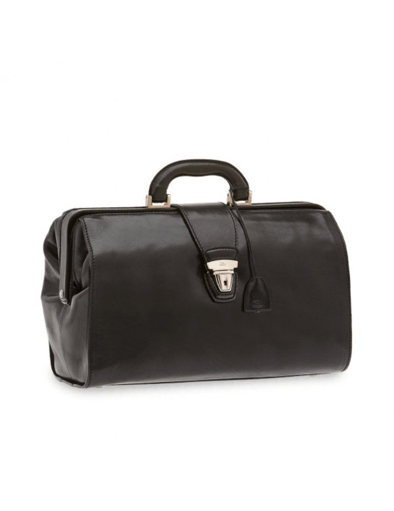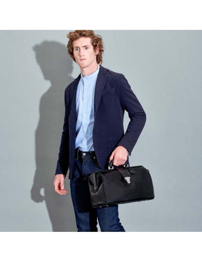 Linea Story, in elegante pelle nera, chiusura centrale metallica, manico superiore per il trasporto