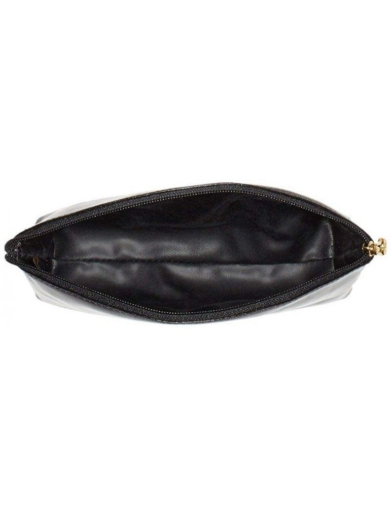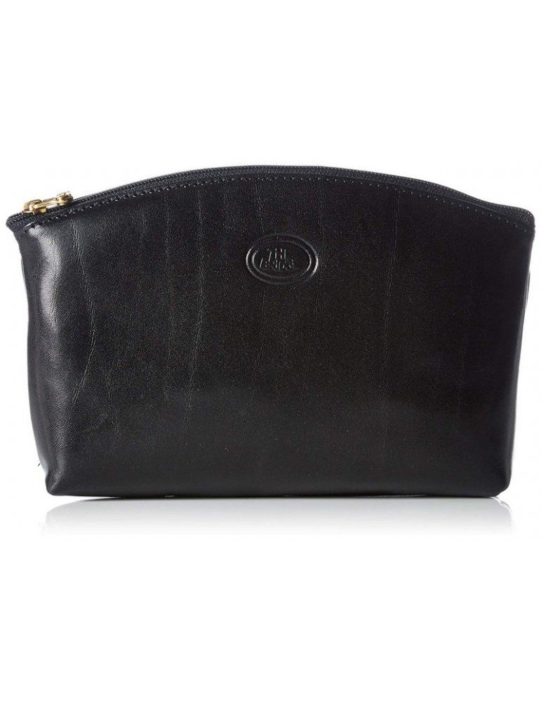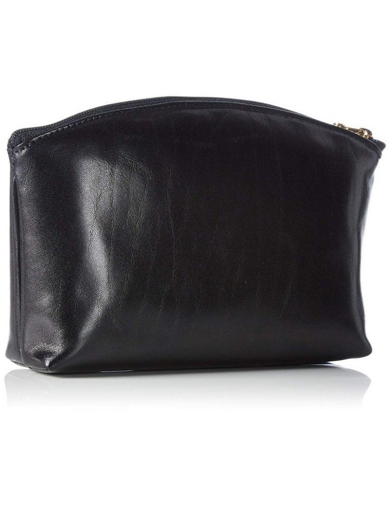 Linea Story, formato grande (16x9x4 cm), in pelle nera, chiusura con zip dorata