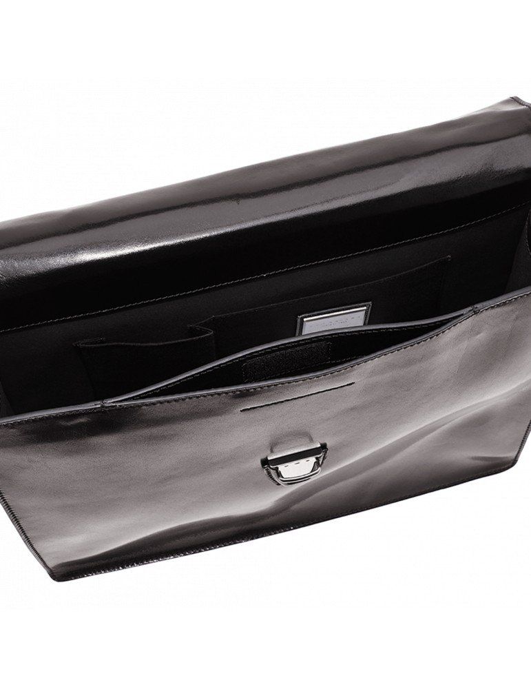 della linea The Bridge Story, in pregiata pelle nera, con singola chiusura colore platino lucido