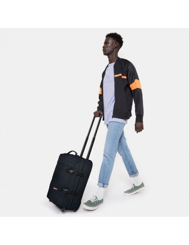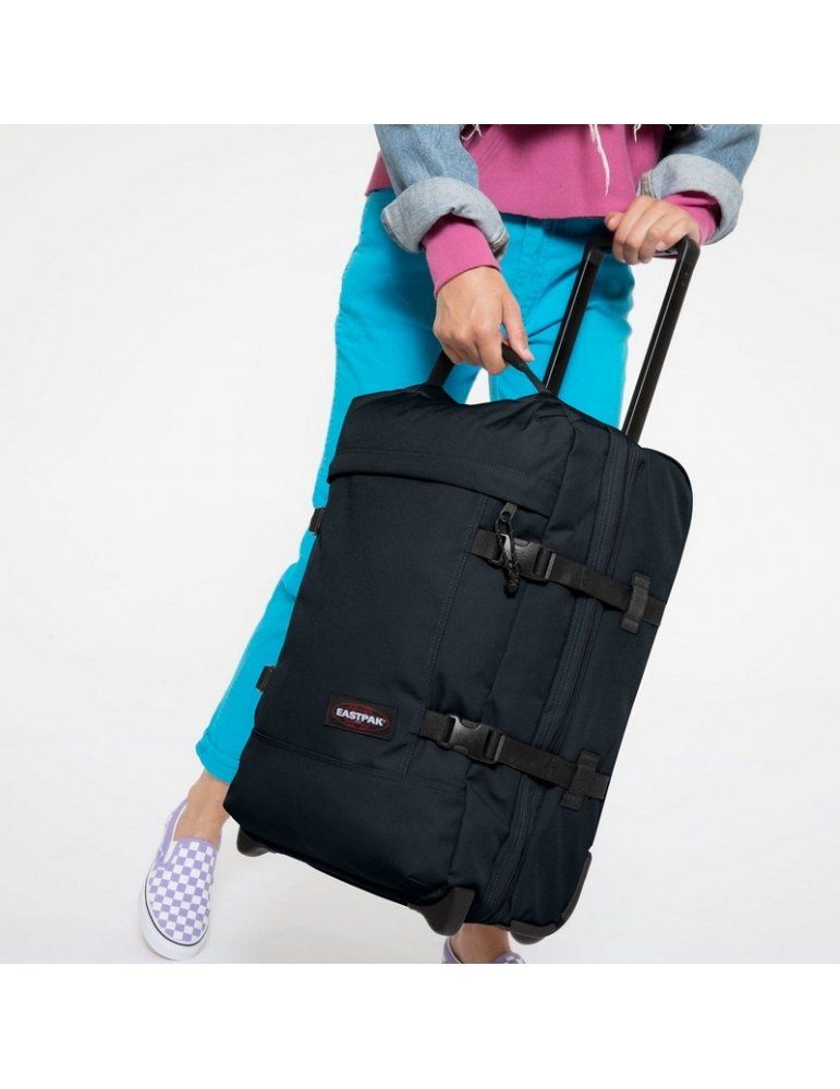 Il trolley Tranverz S della Eastpak è una borsa pratica e capiente: facile da trasportare e da riporre piatta dopo l'uso.