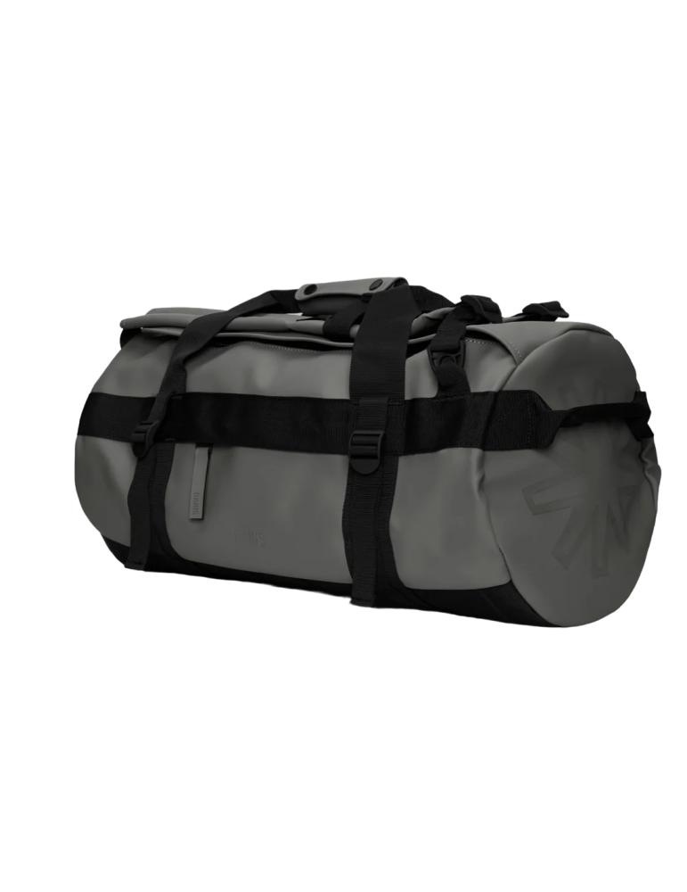La Texel Duffel Bag Small è realizzata nell'iconico tessuto PU impermeabile di Rains, progettato per essere robusto, duraturo e piacevole al tatto.
