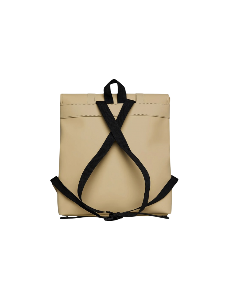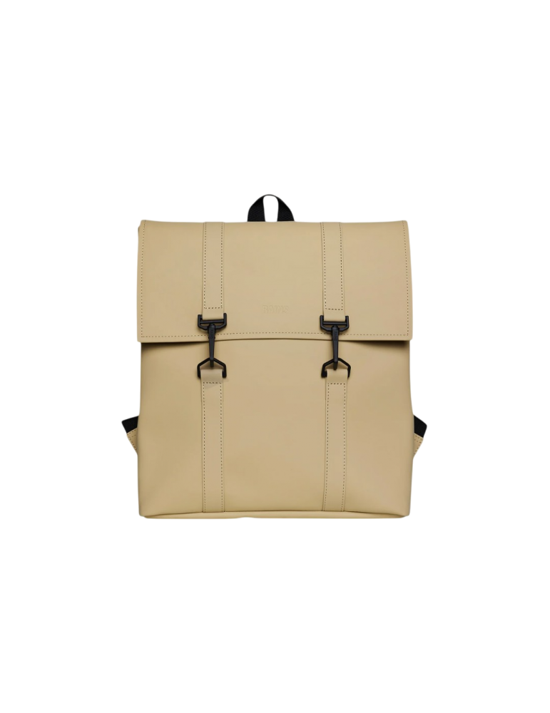 La MSN Bag Mini è realizzata nell'iconico tessuto PU di Rains, progettato per essere robusto, duraturo e piacevole al tatto.
