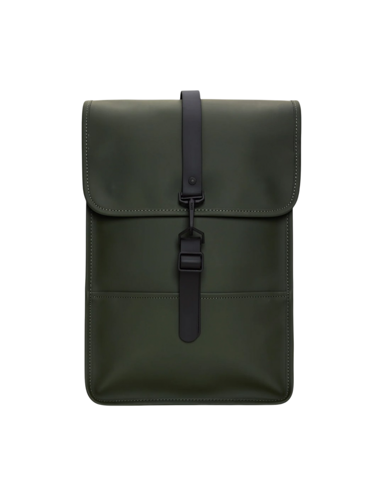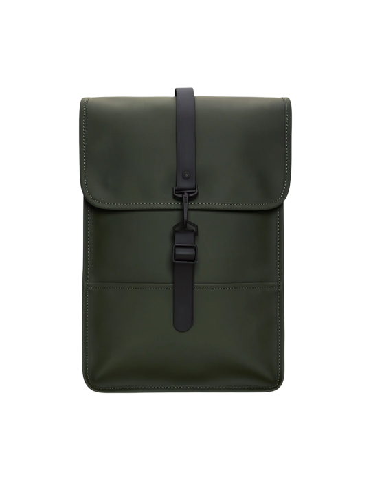 Il Puffed Backpack Mini presenta un esterno fortemente imbottito con chiusura a moschettone. Il modello è realizzato nell'iconico tessuto impermeabile in PU di Rains.