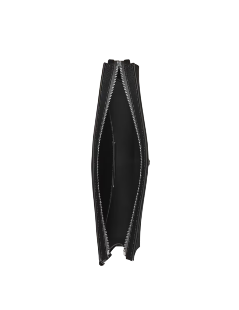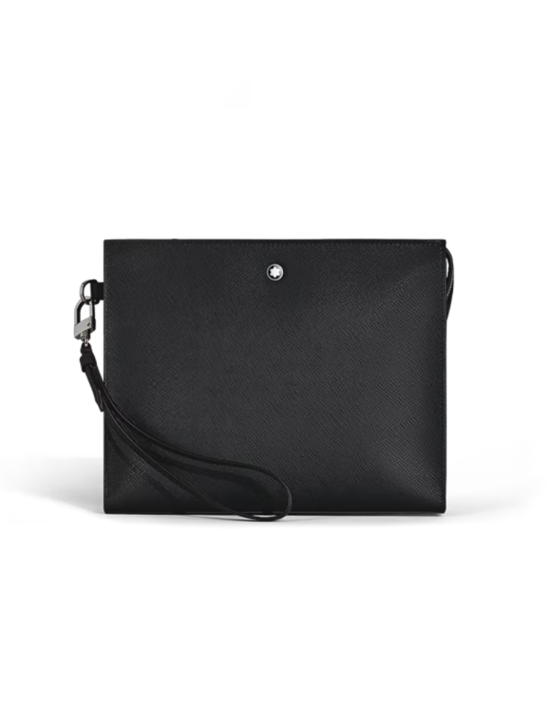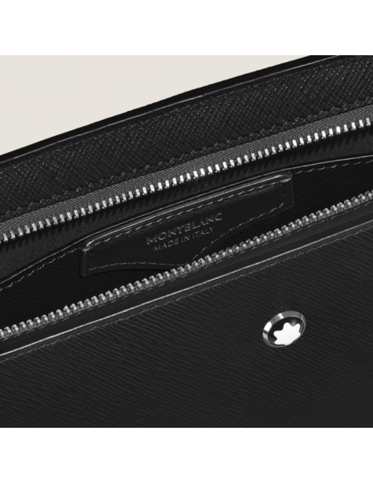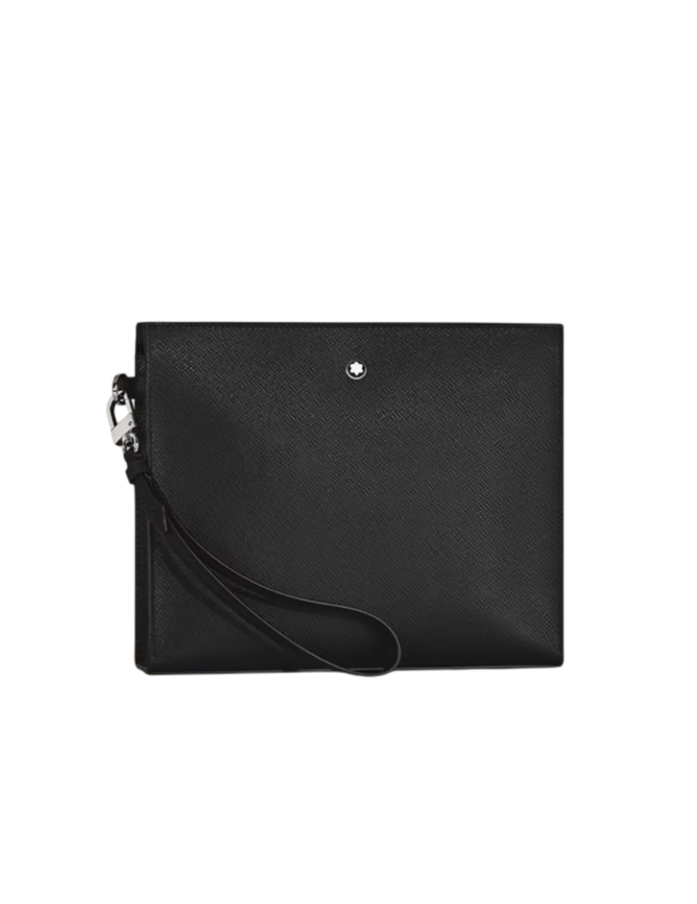 Porta con te i tuoi oggetti essenziali in questa raffinata pochette Sartorial. Realizzata in elegante pelle nera stampa Saffiano, lo scomparto principale dispone di una tasca supplementare aperta per la massima praticità. Può essere portata a mano, sotto il braccio o al polso grazie al suo cinturino amovibile.
